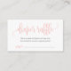 Um cartão de inclusão de rifa de fraldas simples e fofo. Este cartão de inclusão apresenta letras cor-de-rosa delicadas e combina perfeitamente com o convite do Baby Bash nesta coleção. Para adicionar uma redação diferente, basta selecionar o botão "Personalizar" à direita.