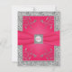 Este cartão de resposta floral em rosa quente e folha de prata FAUX (efeitos impressos) com uma fita PRINTED ON cor fúcsia e medalhão de prata com aparência de gravura falsa combina com o convite de casamento de primavera ou verão mostrado abaixo. Todo o texto é personalizável e também a escolha do papel. Se precisar de ajuda para personalizar este cartão, ou se necessitar de outros itens correspondentes neste mesmo design, por favor envie um e-mail para niteowlstudio@gmail.com.