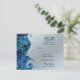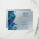 O texto neste cartão de resposta azul e prata é totalmente personalizável. O design do cartão é inspirado nos trópicos, água, conchas paua, ondas e reflexos. Perfeito para um casamento na praia ou destino ou um casamento com um tema de cores azul e prata.