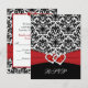 Cartão de RSVP Damasco Preto Branco Vermelho, Cora