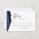 Um design moderno com ágata azul marinho e dourado rosa e texto preto para seus cartões de RSVP de casamento. Você pode personalizar as características deste cartão