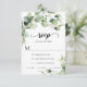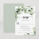 Este cartão de RSVP de casamento com ramos de eucalipto em aquarela e pontos salpicados é perfeito para qualquer casamento de jardim, ao ar livre, formal, vintage, romântico. Seu design suave e fluido é moderno e tradicional. E é bom ter uma contagem geral dos pratos principais para o seu fornecedor de catering. Selecione Personalizar este modelo para torná-lo exclusivamente seu. Em segundos, você verá seus cartões de resposta deslumbrantes.