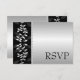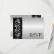 Envie aos convidados do casamento este atraente design de cartão de RSVP com um fundo gradiente prateado adornado com uma borda folhosa. O texto personalizável permite alterar as fontes, mudar as cores e tamanhos do texto como desejar. Papelaria de casamento correspondente disponível com este design também.