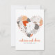 Este convite de casamento com flores e um toque caprichoso apresenta rosas laranja, cinza e marrons em forma de coração, folhas e outras flores variadas. Este cartão de RSVP faz parte de uma coleção de convites de casamento. Produtos correspondentes estão disponíveis abaixo.