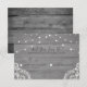 Um simples cartão de RSVP preto e branco rústico com luzes de corda e renda sobre um fundo de madeira. Mensagem-me se precisar de ajuda ou tiver algum pedido especial.