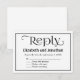 Casual e moderno, este cartão de RSVP de casamento cristão simples em preto e branco coordena com nossa suíte de casamento preto e branco de convites e acessórios cristãos contemporâneos. Cada item pode ser misturado e combinado entre os desenhos para que você possa criar um conjunto de casamento que seja exclusivamente seu. Projetado por Natalie Schorr para Graphic Suite na Zazzle. Selado com um pequeno coração vermelho!