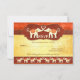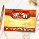 Cartão de RSVP para convites correspondentes com dois elefantes brancos apaixonados, incentivados por suas famílias e tribo. O fundo é uma combinação elegante de ocre e burgundy com elementos metálicos. Também é possível excluir a imagem no verso e usar sua própria imagem ou escolher uma cor personalizada. Este design é inspirado na arte indiana.