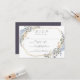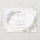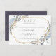 Cartões de RSVP de casamento com moldura geométrica dourada e flores azul em pó em aquarela romântica. Adicione os detalhes do seu casamento, altere as cores, tamanhos ou estilos de fonte para estes cartões de RSVP de coroa botânica moderna. Este design elegante é ideal para casamentos de primavera e verão.