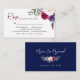 Responda com estilo ao nosso elegante cartão de RSVP de casamento floral azul marinho Borgonha. Este cartão requintado apresenta um deslumbrante design floral em tons ricos de borgonha, azul marinho e rosa, complementando perfeitamente o tema do seu casamento. Com sua sensação luxuosa e atenção aos detalhes, este cartão de RSVP certamente impressionará seus convidados!