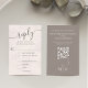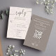 Este cartão de RSVP de casamento rosado combina elegância e funcionalidade com uma opção de resposta por código QR para conveniência moderna. Projetado com acentos florais em aquarela e uma seção clássica de escolha de refeição, ele mistura tipografia simples com letra de caligrafia elegante para um visual atemporal. Perfeito para casais que buscam um design sofisticado e clássico para complementar seu conjunto de papelaria de casamento.