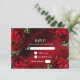 Cartão de RSVP de Casamento Gótico Elegante com Rosas Vermelhas. Personalize a frente e verso. Itens correspondentes na minha loja. Entre em contato para um pedido personalizado.