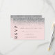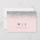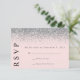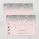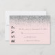 Cartão de RSVP de Casamento Rosa e Prata com Brilh