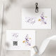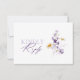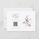 Um cartão de RSVP moderno e elegante com um código QR conveniente para respostas fáceis. O design é aprimorado com delicadas flores silvestres em aquarela em tons suaves de roxo e amarelo, adicionando um toque romântico e sofisticado. Perfeito para casamentos, chá de noiva ou eventos formais, este cartão de RSVP combina beleza com conveniência, tornando as respostas dos convidados perfeitas.