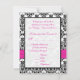 Cartão de RSVP de Damasco Rosa, Branco e Preto