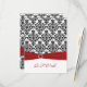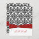 Cartão de RSVP de Damasco Vermelho, Branco e Preto