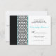 Cartão de RSVP de Damask Preto Branco Turquesa