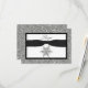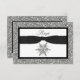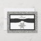 Este cartão de RSVP de casamento de inverno preto e branco, chique e festivo, tem um laço e fita PRETOS impressos com um floco de neve com brilho (impresso) que combina com o convite de casamento mostrado abaixo. Se você precisar de outros itens correspondentes neste design ou se desejar uma combinação de cores diferente, envie um e-mail para niteowlstudio@gmail.com.