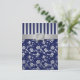 Cartão de RSVP de Flor de Vinha Prata e Azul Marin