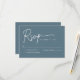 Este cartão de RSVP azulpoeirado chic apresenta um design de caligrafia moderna com um layout limpo, perfeito para casamentos e eventos formais. Simples, elegante e fácil para os convidados preencherem. Personalize para combinar com o seu tema!