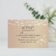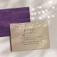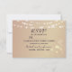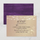 Cartão de RSVP de noivado rústico elegante com luzes, renda floral dourada e caligrafia simples, em tons de rosa dourada e roxo.
