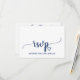 Este cartão de RSVP de pedido de música com caligrafia simples azul-marinho é perfeito para um casamento elegante. O design branco e azul apresenta uma tipografia rústica chique e um coração romântico encantador. Monte a lista de convidados do seu casamento e a lista de músicas para a pista de dança de uma só vez! Este cartão-postal de resposta de casamento convenientemente pergunta aos convidados se eles poderão comparecer ao seu casamento e também qual música os fará dançar.