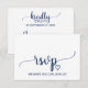 Este cartão de RSVP de pedido de música de caligrafia simples azul marinho é perfeito para um casamento elegante. O design branco e azul apresenta uma tipografia rústica chique e um coração romântico encantador. Monte sua lista de convidados de casamento e sua lista de músicas para pista de dança de uma vez! Este cartão postal de resposta de casamento convenientemente pergunta aos convidados se eles poderão comparecer ao seu casamento e também qual música os fará dançar.