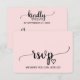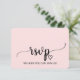 Este cartão de RSVP de pedido de música de caligrafia simples rosa é perfeito para um casamento elegante. O design apresenta uma fonte cursiva fluída romântica e doce em um lindo e delicado fundo rosa claro de balé. Construa sua lista de convidados de casamento e sua lista de músicas para pista de dança de uma vez! Este cartão-postal de resposta de casamento convenientemente pergunta aos convidados se eles poderão comparecer ao seu casamento e também qual música os fará dançar.
