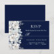 Cartão de RSVP flor branca sakura azul marinho