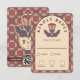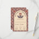 "Complete o seu conjunto de casamento com este elegante cartão de RSVP Art Deco com um design floral de vitral vintage. Este cartão funcional inclui uma seção de escolha de refeição e um código QR no verso para respostas digitais. O padrão geométrico intricado ao fundo é 100% ajustável em cor para combinar perfeitamente com o tema do seu casamento. Ideal para casais que procuram uma estética retrô-moderna em tons terrosos de terracota e malva."