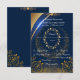 Complete a sua suite de papelaria de casamento com este cartão de RSVP floral azul e dourado elegante, apresentando um fundo azul rico acentuado por flores botânicas douradas luxuosas. Este cartão de resposta personalizável é ideal para temas de casamento formais ou modernos, permitindo que os convidados confirmem presença enquanto mantém uma aparência premium coordenada.
