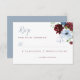 Uma grinalda floral com flores elegantes em burgundy e azul poeirento. Você pode personalizar o texto e as características de cor deste cartão.
