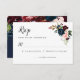 Uma grinalda floral com flores elegantes burgundy e azul marinho. Você pode personalizar o texto e as características de cor deste cartão.