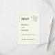Garanta um processo de resposta contínuo para os convidados do seu casamento com o nosso 'Cartão de RSVP Elegante Minimalista'. Com um design brilhante e simples, este cartão de RSVP equilibra sofisticação e clareza, facilitando a confirmação de presença dos seus convidados. Personalizável para se adequar ao tema do seu casamento, é impresso em material de alta qualidade que reflete sua atenção aos detalhes. Opte por esta peça elegante e funcional para completar o conjunto de papelaria do seu casamento.