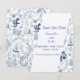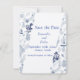Cartão de RSVP Romance Vintage Azul. Cartão Plano 'Salvar a Data' Personalizável.