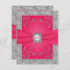 Este cartão de resposta floral em rosa vibrante e efeito de folha de prata FAUX (efeitos impressos) com uma fita PRINTED ON cor fúcsia e medalhão de prata com aparência de gravura falsa combina com o convite de casamento de primavera ou verão mostrado abaixo. Todo o texto é personalizável, assim como a escolha do papel. Se precisar de ajuda para personalizar este cartão, ou se necessitar de outros itens correspondentes no mesmo design, envie um e-mail para niteowlstudio@gmail.com.
