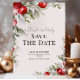 Defina o tom festivo com antecedência com este elegante cartão de salvamento da data da festa de Natal botânica. Com bagas vermelhas em aquarela, folhagem verde suave e tipografia moderna, é a maneira perfeita de informar os convidados para marcar seus calendários. Personalize com a data da sua festa e detalhes de localização. Uma escolha elegante para reuniões sazonais e celebrações de Natal!