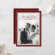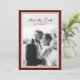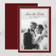 Cartão de Salvamento de Data de Foto de Outono Bordeaux em um design atemporal inspirado em Dinheiro Antigo — um anúncio refinado para casamentos elegantes de outono e inverno. Inspirado na estética de Luxo Silencioso, Patrimônio e Editorial Clássico. Perfeito para casais que amam papelaria tradicional com uma característica de foto romântica. Estilize com detalhes de fita de veludo, decoração com velas e flores em tons de borgonha para um casamento de outono sofisticado.