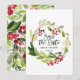Cartão de salvar a data com folhagem vermelha e verde em aquarela de inverno. Com texto em letra cursiva moderna e aquarelas na moda. Parte de uma coleção.