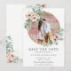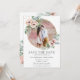 Destaque sua foto pré-casamento com este cartão de foto para salvar a data boho chic. Com lindas rosas e papoulas em rosa poeirento e verde de eucalipto em aquarela. Projetado para combinar com nossa coleção de casamento Cherise. Personalize-o com seus detalhes fácil e rapidamente, basta pressionar o botão personalizar para reorganizar e formatar o estilo e a colocação do texto.