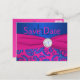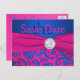****POR FAVOR, NOTE que a fita e as joias são imagens impressas e não são reais. Este cartão postal de salvar a data com monograma em azul cobalto e rosa fúcsia floral damasco combina com o convite de casamento mostrado abaixo. Se você precisar de alterações ou quiser itens adicionais correspondentes, envie um e-mail para niteowlstudio@gmail.com com sua solicitação.