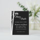Ainda não sabe todos os detalhes do casamento, mas precisa notificar seus convidados? É para isso que servem os cartões-postais de Save the Date! Por que não usar esse tema adoravelmente doce de pássaros apaixonados empoleirados em uma árvore de bétula em preto clássico?