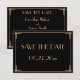 Cartões planos de salvar a data de casamento com arte deco do Grande Gatsby em dourado e preto com texto mutável