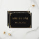 Cartões planos de salvar a data de casamento com arte deco do Grande Gatsby em dourado e preto com texto mutável