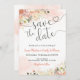 Este cartão de salvar a data de casamento apresenta uma linda grinalda floral rosa bege em aquarela. Personalize-o com seus detalhes fácil e rapidamente.