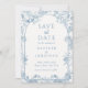 Cartão de Salvar a Data de Casamento Floral Azul E