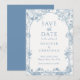 Cartão de Salvar a Data de Casamento Floral Azul Empoeirado