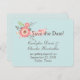 Lindo cartão de salvar a data de casamento azul ovo de robin, com uma linda faixa cor-de-rosa coral e flores, no topo. Personalize o texto marrom para atender às suas necessidades. Lindo mix de produtos de casamento estão disponíveis para combinar.