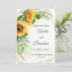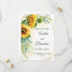Cartão de casamento rústico para salvar a data com girassóis brilhantes e folhagens de eucalipto. Este design de casamento botânico é perfeito para casamentos de outono, no campo ou ao ar livre. Este design adiciona calor e alegria, mantendo um estilo rústico natural.