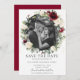 Destaque sua foto pré-casamento com este cartão de salvar a data de foto boho chic. Apresentando uma bela grinalda de flores marfim e folhagem verde em aquarela borgonha. Personalize-o com seus detalhes de forma fácil e rápida, basta pressionar o botão personalizar para reorganizar e formatar o estilo e a colocação do texto.