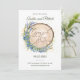 Cartão de casamento rústico para salvar a data com acentos de lavanda e mirtilo com um centro de peça de madeira natural. Este design de casamento botânico é ideal para casamentos no campo, boho ou inspirados na natureza. Totalmente personalizável para o seu anúncio de casamento.